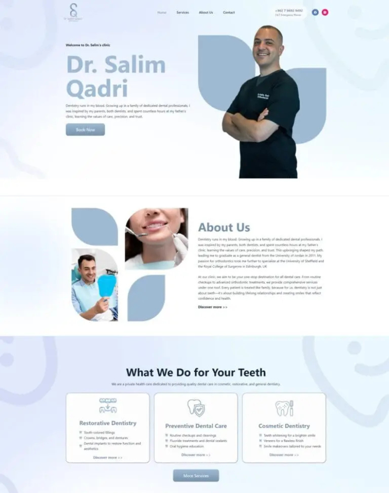 Professional ImpactA focused set of technical and creative skills built through real projects, helping me deliver professional websites, better user experiences, and practical digital solutions.backBusiness WebsitesOnline stores built for better product presentation and seamless customer journeys.Contact USAppointment and reservation systems designed for service-based businesses.previousnextProfessional company websites built to reflect brand identity and support business growth.E-Commerce Stores Educational Platforms Custom Digital Solutions From WordPress websites to advanced business systems, I build practical solutions tailored to real client needs.Structured learning websites with courses, dashboards, and user-focused experiences.Booking Systems Clinic & Medical Websites Custom internal systems that help businesses organize data, workflow, and operations efficiently.Contact UsOngoing website updates, performance checks, bug fixes, and technical support to keep every project running smoothly.previousnextProfessional healthcare websites that present services clearly and build trust.CRM & Admin Dashboards Landing PagesSchool Websites Clear and organized platforms for schools, admissions, announcements, and communication.Flexible WordPress e-commerce solutions tailored for scalable online selling.Maintenance & SupportReach Out To UsCONTACTSAddressJordan -Amman-Tlaa Al-AlEmail[email protected]Phone+962 7 9082 3253FbIGInbackMy WorkA curated showcase of work that highlights my experience in creating professional websites, tailored digital solutions, and user-focused online experiences.backNextMy WorkA curated showcase of work that highlights my experience in creating professional websites, tailored digital solutions, and user-focused online experiences.NextbackMy WorkA curated showcase of work that highlights my experience in creating professional websites, tailored digital solutions, and user-focused online experiences.backNextMy WorkA curated showcase of work that highlights my experience in creating professional websites, tailored digital solutions, and user-focused online experiences.backNextMy WorkA curated showcase of work that highlights my experience in creating professional websites, tailored digital solutions, and user-focused online experiences.backSummaryServicesWorkMy SkillsContact